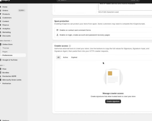 “Shopify Admin”. - “Crawler access”.