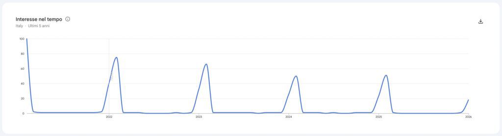 Uno degli errori più gravi che solitamente compiono i proprietari di eCommerce è quello di pianificare e mettere online una promozione stagionale a ridosso della festività. Analizzando i dati di trends possiamo notare che una piccola parte degli utenti che sono interessati ad acquistare un prodotto o un servizio per San Valentino iniziano le loro ricerche già tra fine Dicembre e inizio Gennaio. Capirai bene che il tempismo è fondamentale!